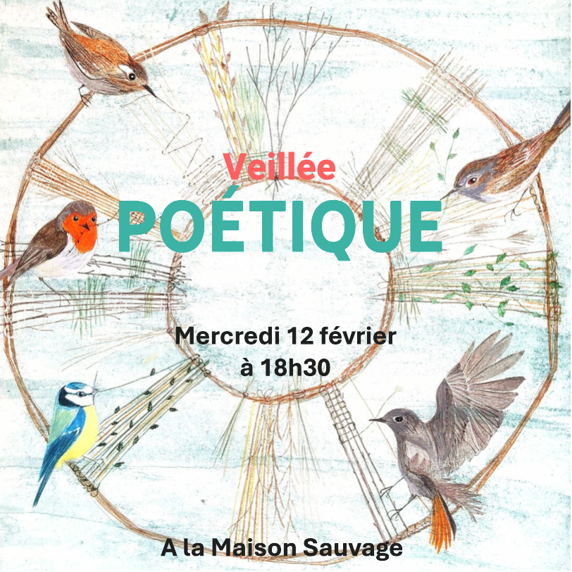Veillée poétique Mercredi 12 février à 18h30 Comment la résonance de la poésie nous aide-t-elle à explorer l'écologie du vivant? Les veilleurs poétiques vous invitent à cette exploration... Reem, José, Johan et Marie, amoureux de la poésie, viennent partager différentes visions de "l'unité du vivant" à travers leurs textes, musiques et danses... Un moment suspendu...