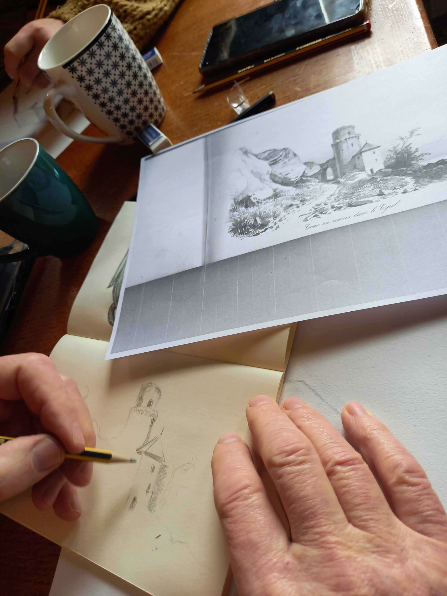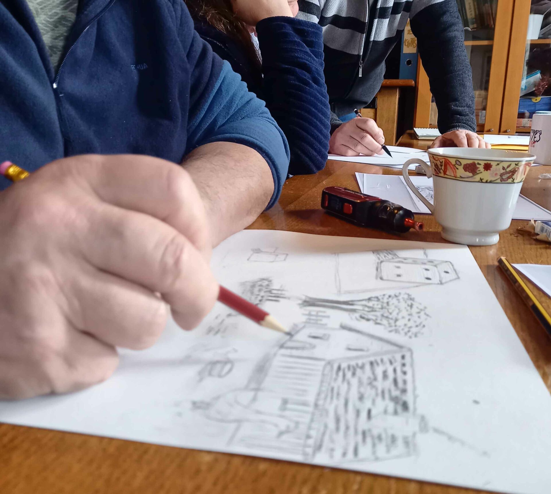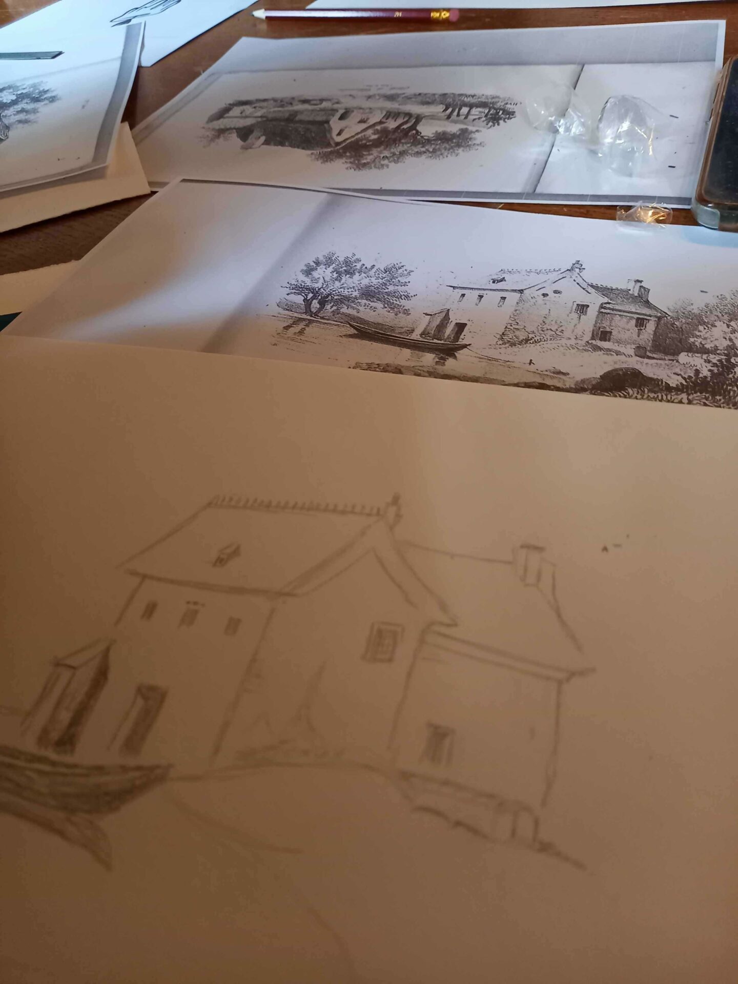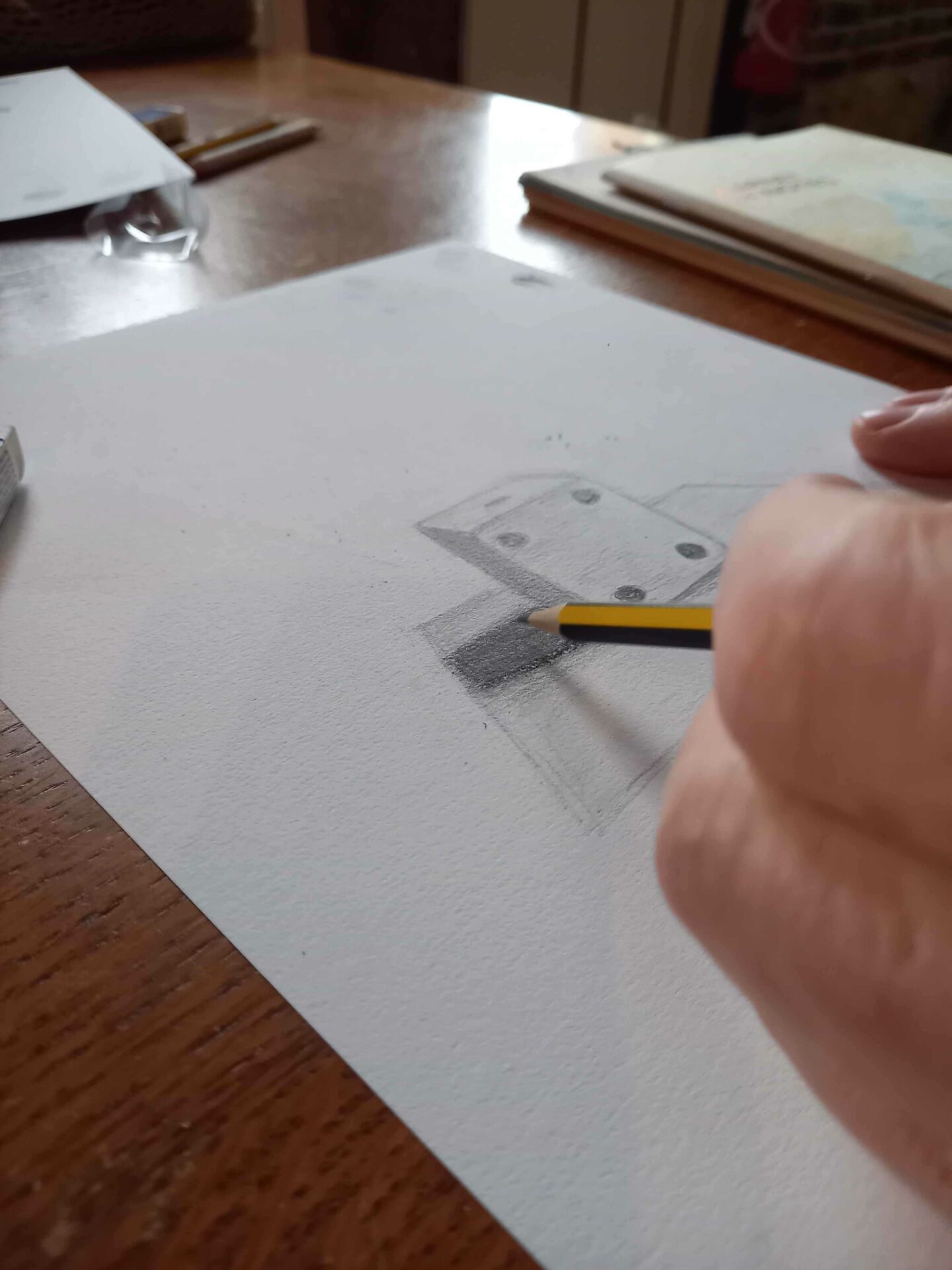 Première séance dessin ce matin ! Patrick Bigeon a mené 1 groupe de 6 artistes en herbe qui a pu s’exercer sur la perspective et les ombres d’un dé