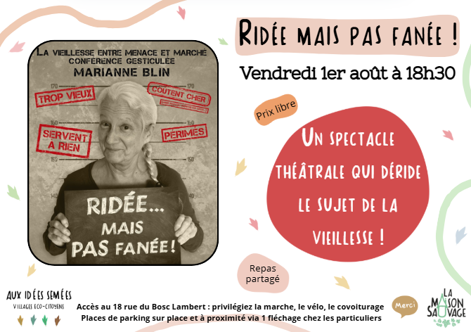 La vieillesse entre menace et marché. C’est à partir de ressentis, d’anecdotes personnelles, d’humour, d’émotion, de lectures pleines de sens, d’interpellation du public que la conférencière aborde des idées reçues concernant les vieux, sur la sexualité, la santé, la maltraitance, la fin de vie, la lutte des âges, la silver économie, la gérontechnologie…