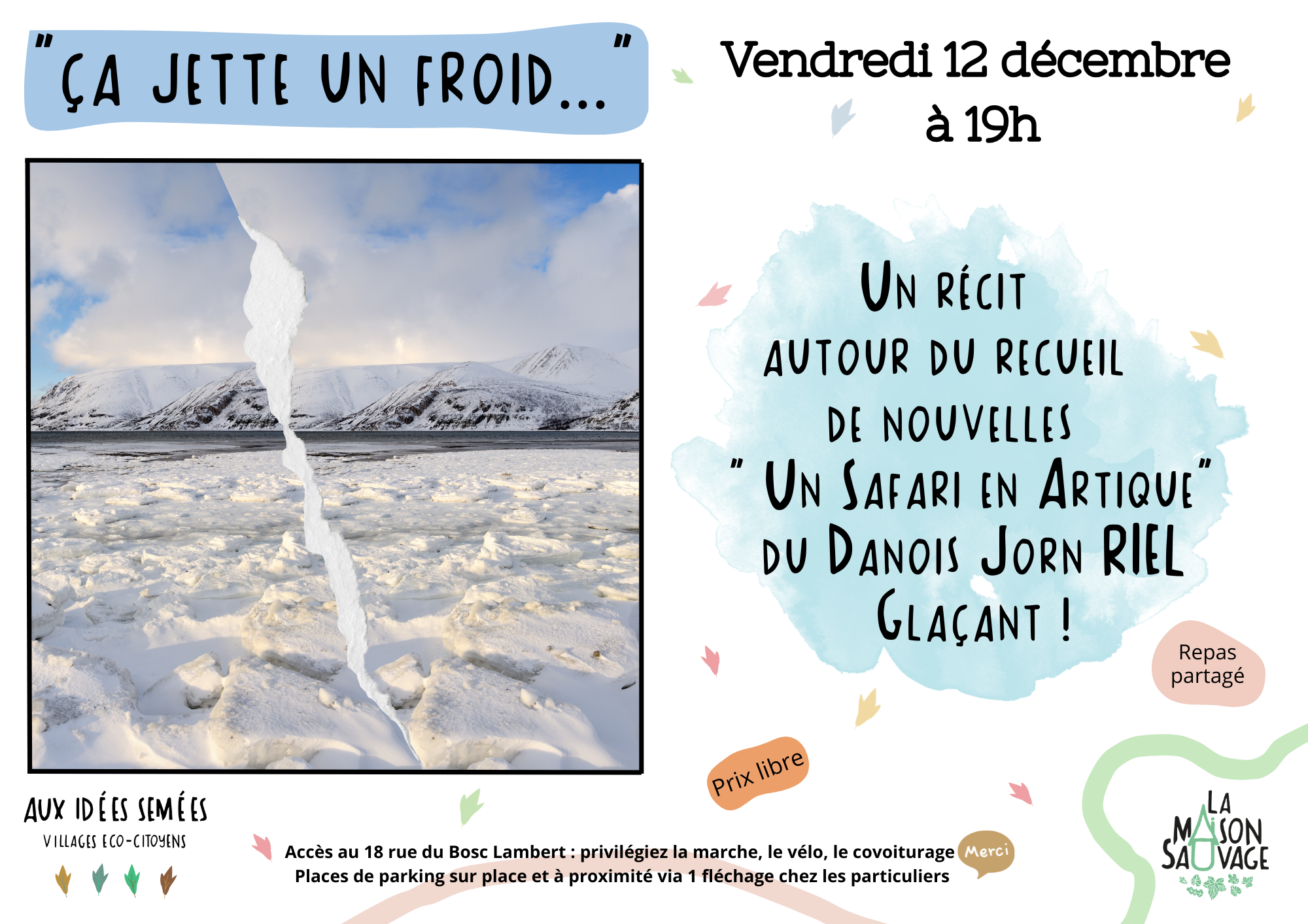 "Ca jette un froid..." Vendredi 12 décembre à 19h Parce que ce récit est issu d'un recueil de nouvelles du Danois Jorn RIEL "Un Safari Arctique" et qu'il y est question de vengeance, de banquise et de menace dans cet univers déjà glacé, ça jette un froid ! Nous voilà plongé dans un monde boréal,...