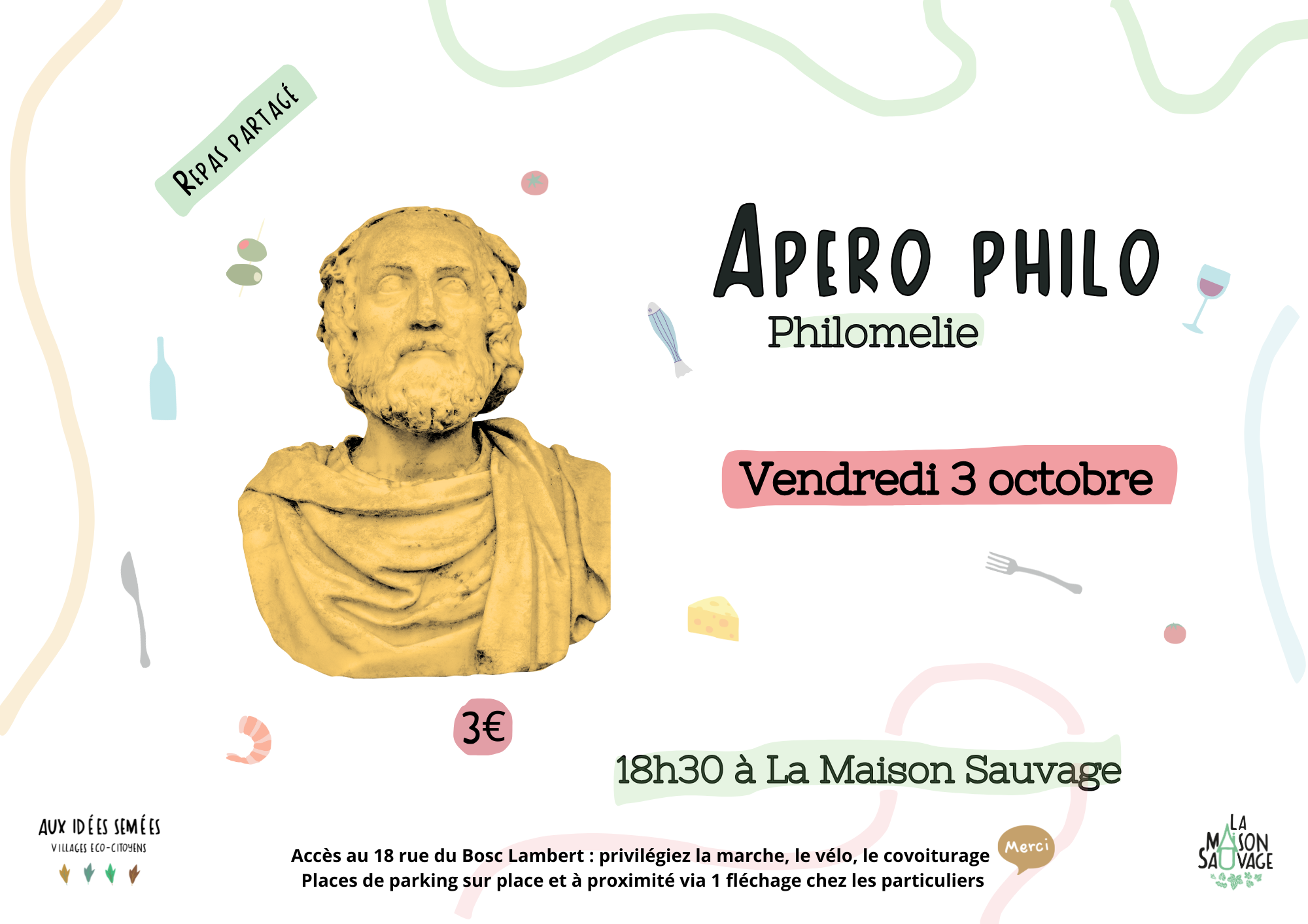 Apéro philo Vendredi 3 octobre à 18h30 Thème : "une éthique de l'environnement est-elle possible ?" Amateurs, connaisseurs ou simplement animés d’une envie de discuter autour d’un verre, venez participer à notre Philomélie pour débattre, explorer et questionner le sens des choses et de la vie dans le respect et l’écoute de l’autre. Le sujet...