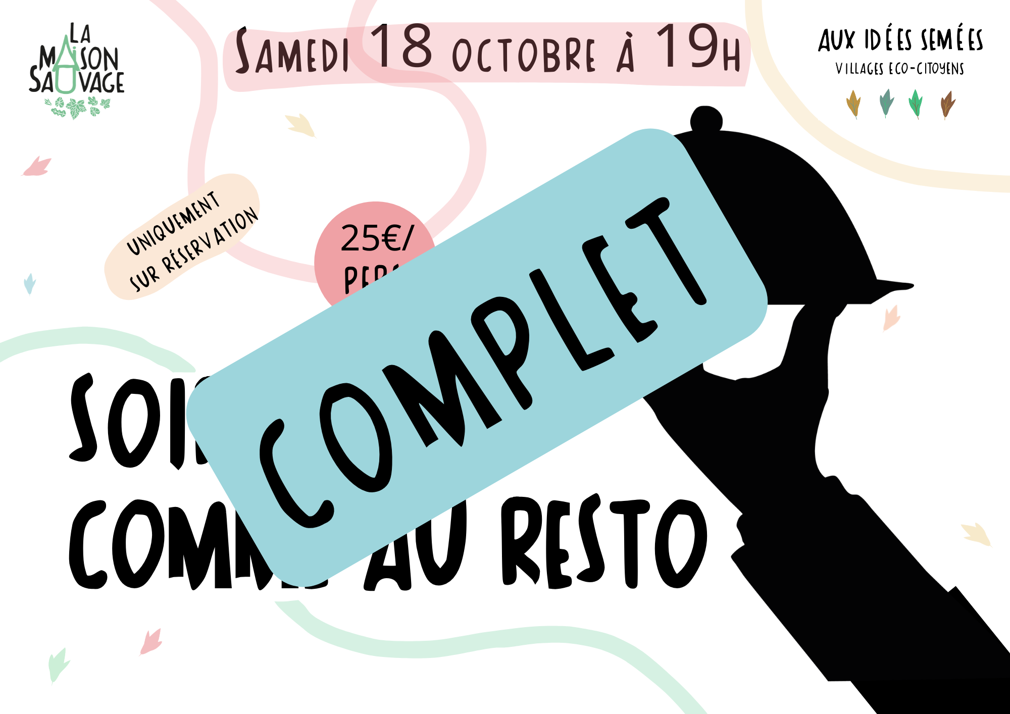 Comme au resto Samedi 18 octobre à 19h Roulement de tambour ! Pour cette 3ème édition on ne vous révèlera pas QUI est aux fourneaux ... Vous aimez les surprises autant que les aventures culinaires alors INSCRIVEZ-VOUS !! Pour vous donner l'eau à la bouche, éveiller vos sens et susciter votre curiosité, sachez qu'il y...