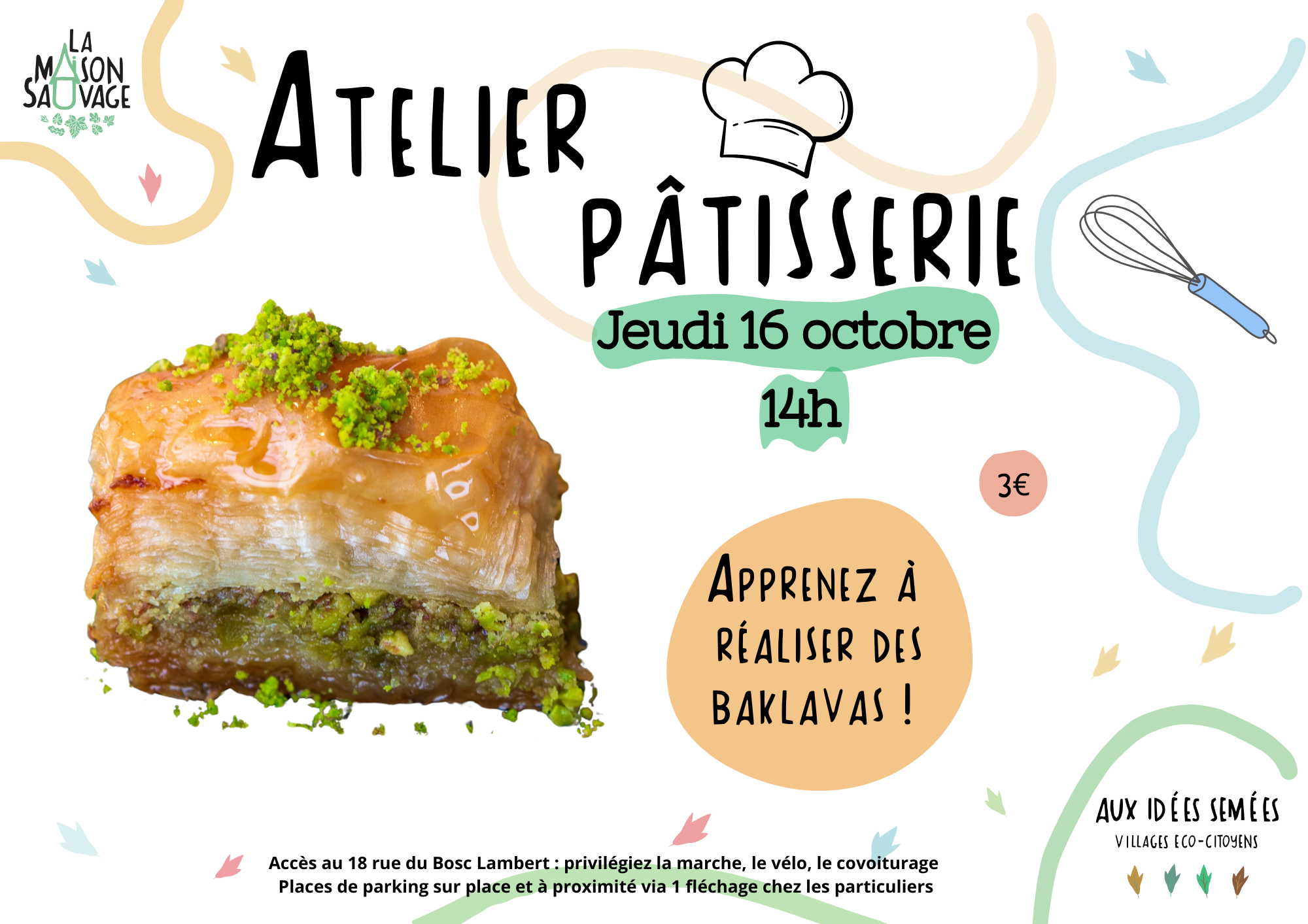 Atelier pâtisserie Jeudi 16 octobre à 14h A tous les gourmand(e)s ! Si vous aviez toujours rêvé de réaliser des baklavas, c'est le moment de participer à cet atelier sucré ! Guidés par Claude et Luisa, la recette n'aura plus de secret pour vous, de quoi régaler vos proches ! Prévoyez 3€ de participation et...