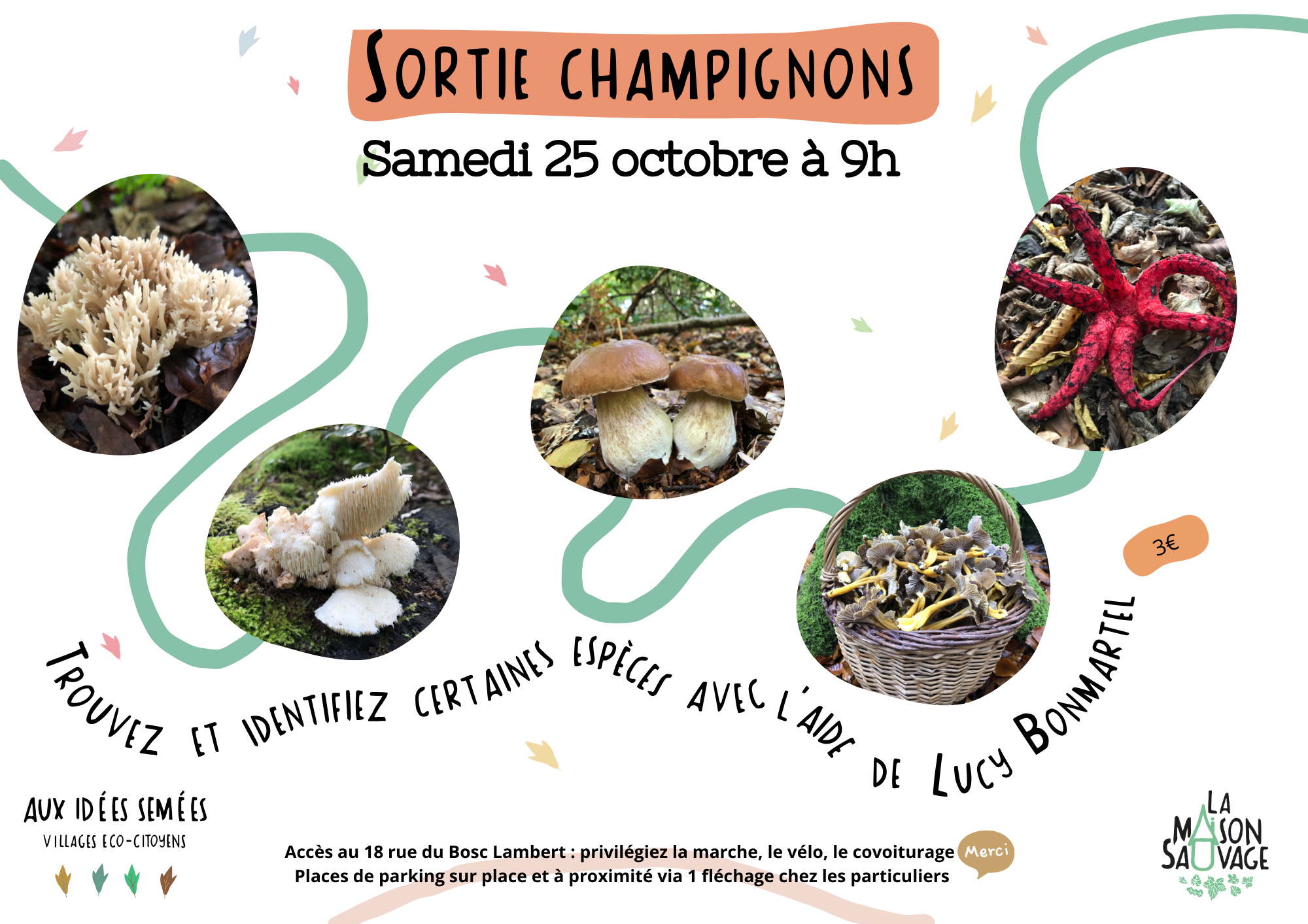 Sortie champignons Samedi 25 octobre à 9h Accompagnés de Lucy Bonmartel, découvrez le vaste monde des champignons ! Des cèpes de Bordeaux aux pieds de mouton, des morilles en passant par les chanterelles grises, ou encore la russule charbonnière, les coulemelles ou les lactaires délicieux ... vous apprendrez à les trouver, les reconnaître et éviter...