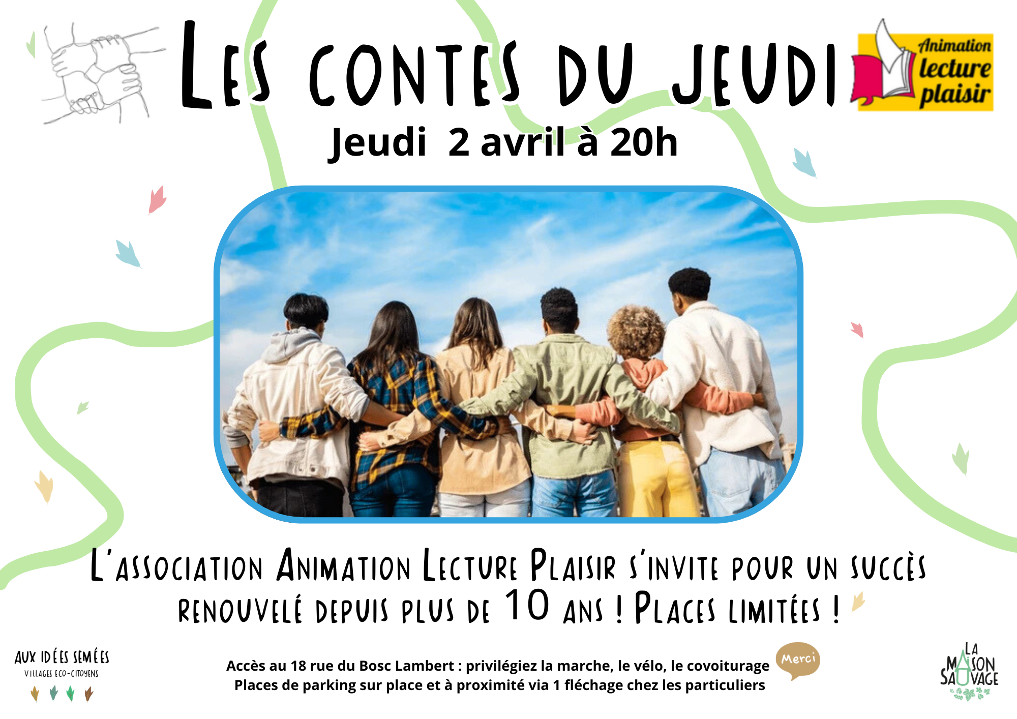 Les contes du jeudi Jeudi 2 avril à 20h L’Association ANIMATION LECTURE PLAISIR mène, depuis plus de 40 ans, des actions lecture en milieu rural sur le territoire normand : festival de lecture à voix haute, expositions, animations… Ceci, pour mettre en valeur les lieux de lecture publique et développer le livre et la lecture...