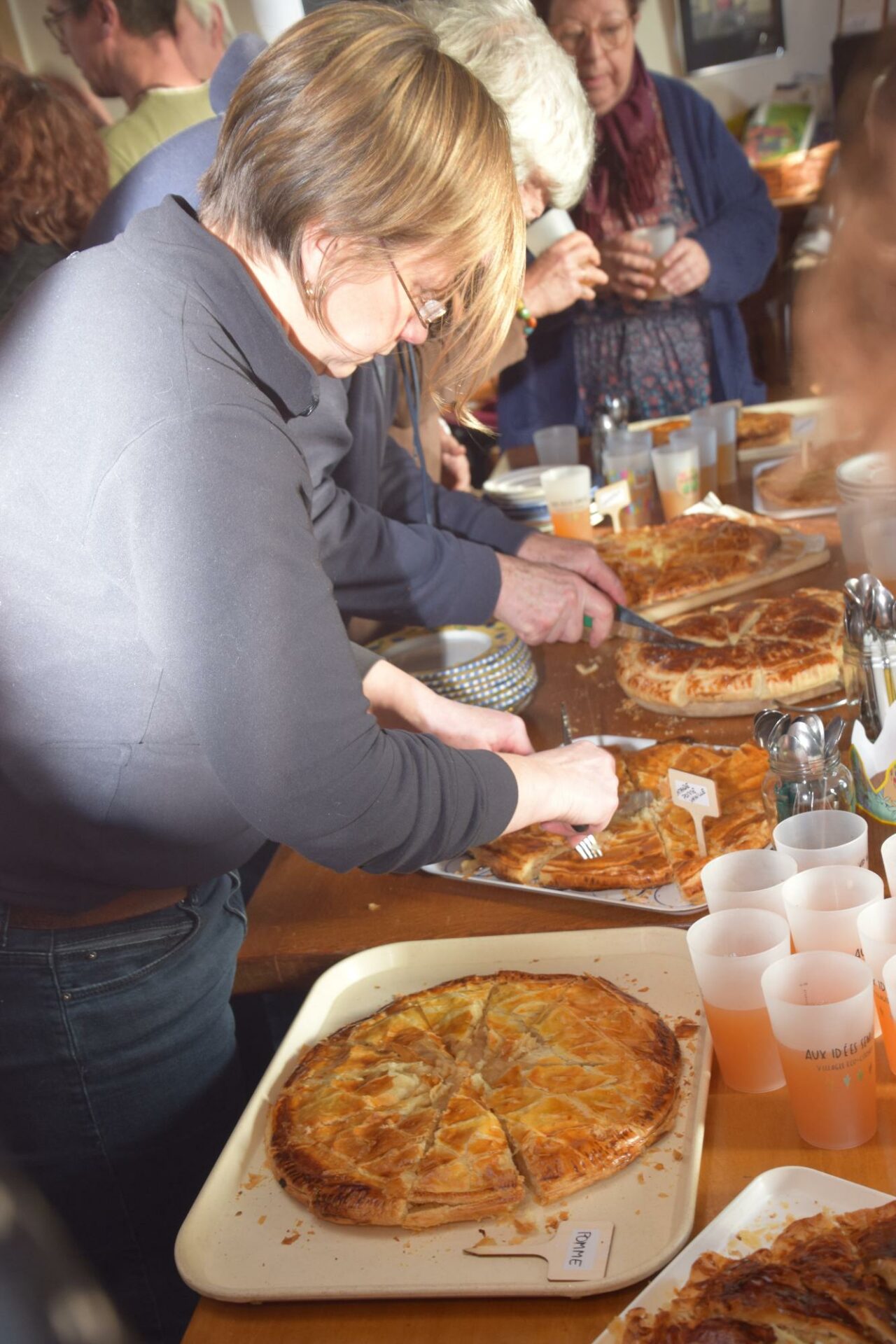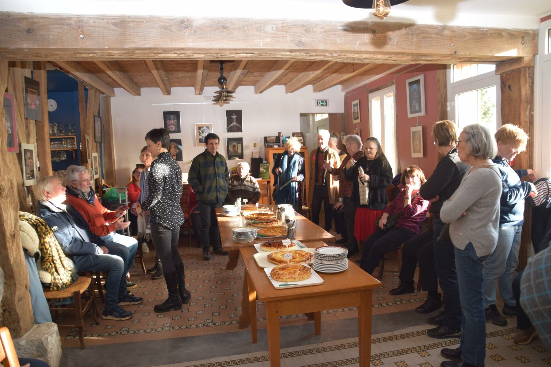 Il y avait du monde pour ce moment fort de l’année ! Le plaisir de se retrouver, de déguster un morceau de galette maison et d’échanger les vœux autour du poêle : un vrai moment de convivialité et de partage :-). Il y en avait aussi pour tous les goûts : frangipane, crème d’amande et pâtissière, amande-orange, chocolat, pommes, amande-pomme-vanille… Une idée de recette pour l’année prochaine ?^^