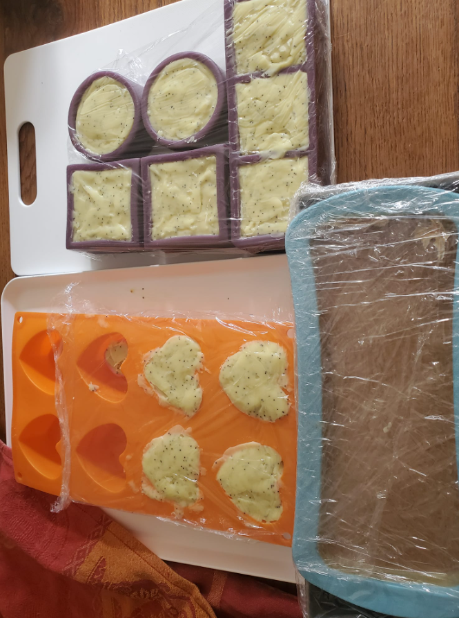 ! Ainsi, 3 apprenties savonnières initiées par Audrey, ont pu réaliser 2 recettes de savons au naturel : le savon gommant aux graines de pavot, le savon bonne mine à la carotte, au curcuma et à la cannelle! Démoulage prévu dans 5 jours pour une mise en cure de 4 à 6 semaines ! Merci Audrey!!