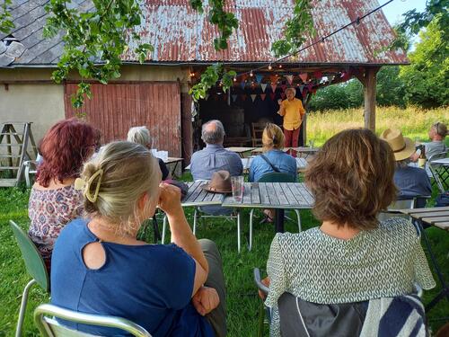 Mercredi 11 juin, les spectateurs de la Maison Sauvage se sont laissés transportés au gré des mots de ce vieux loup de mer ! « Sur l’eau, dans l’eau, Contre vents et marées est dédié à la mer. Au fil des histoires » nous avons croisé « un farfadet surfeur, un ogre des mers, le petit Furet-Pêcheur invétéré, des ondines, des elfes. Un voyage sur un bateau imaginaire, et son capitaine » … Avec une pointe de poésie et un humour souvent communicatif, les contes nous ont laissé rappelé combien nous pouvions regoûté à ces plaisirs d’enfance ! Merci à Eugène et à tous les spectateurs conquis !