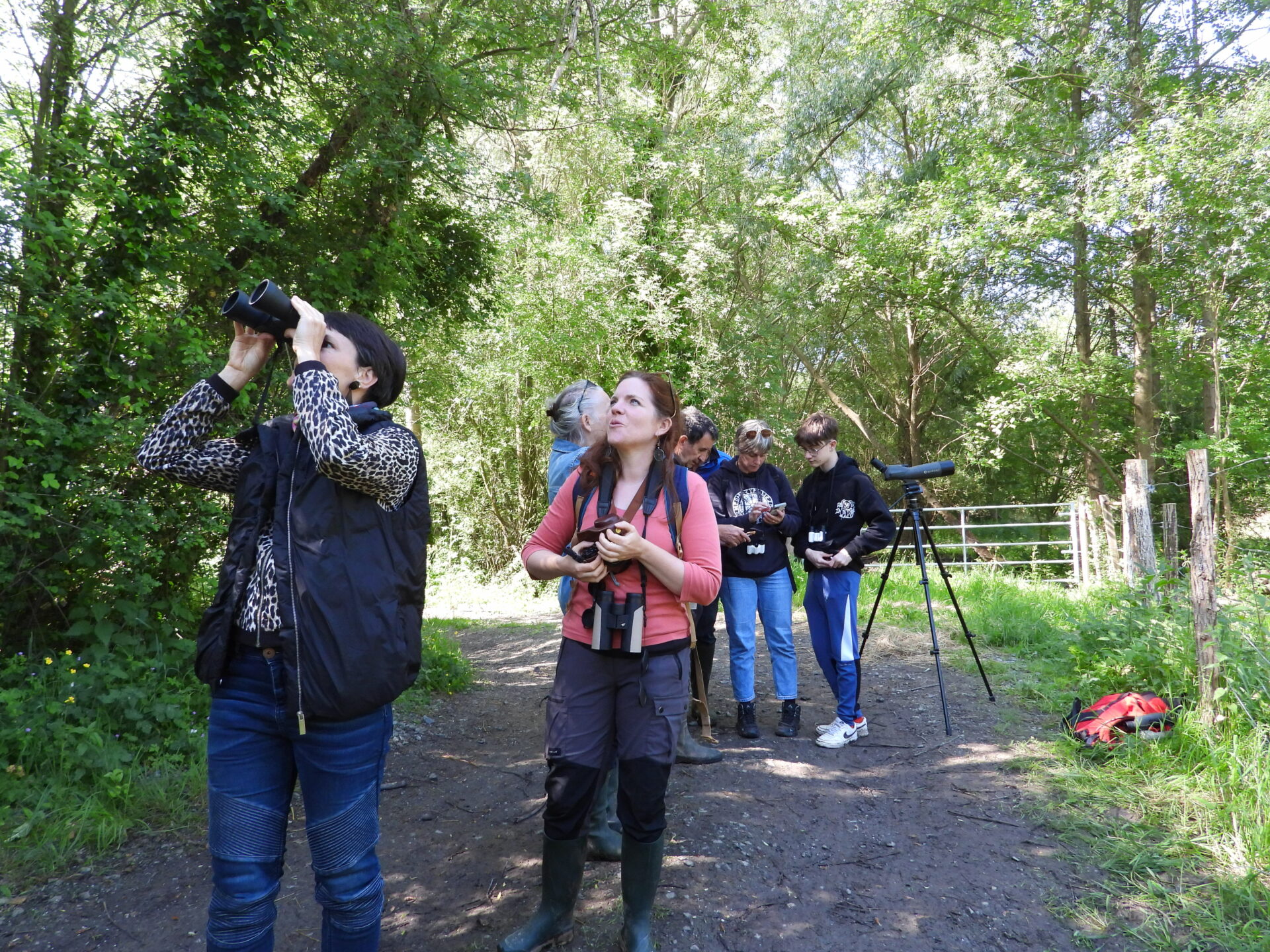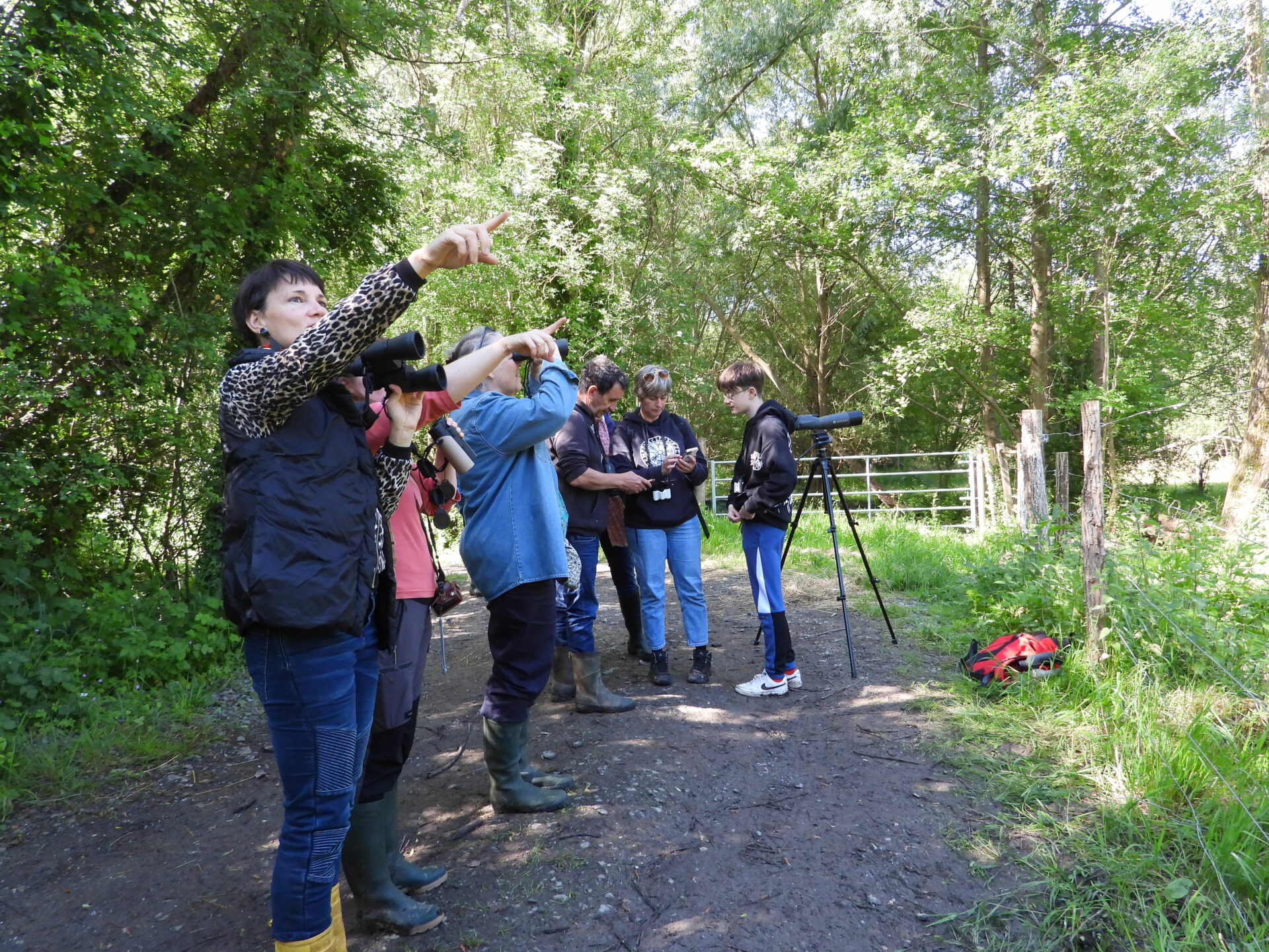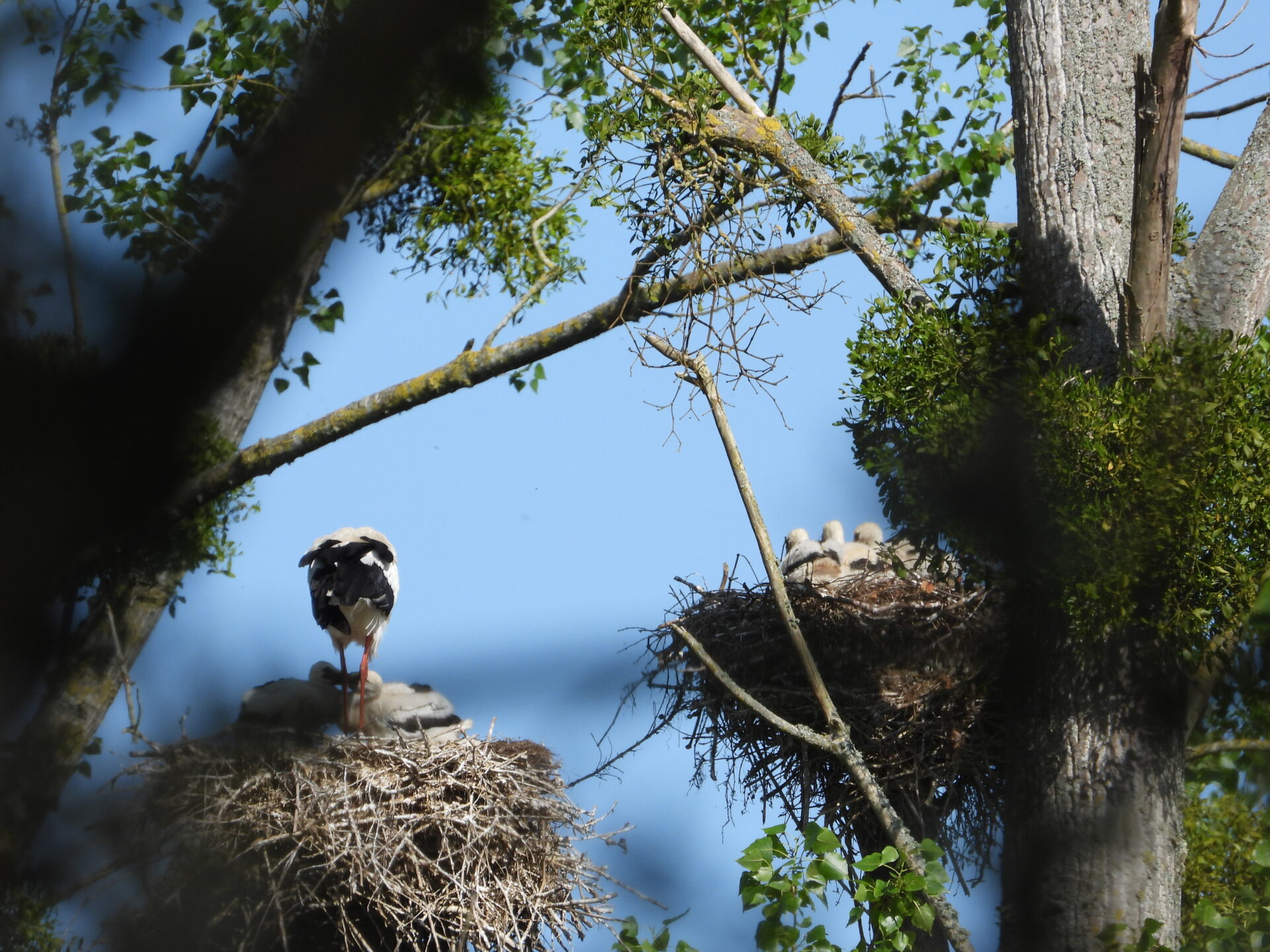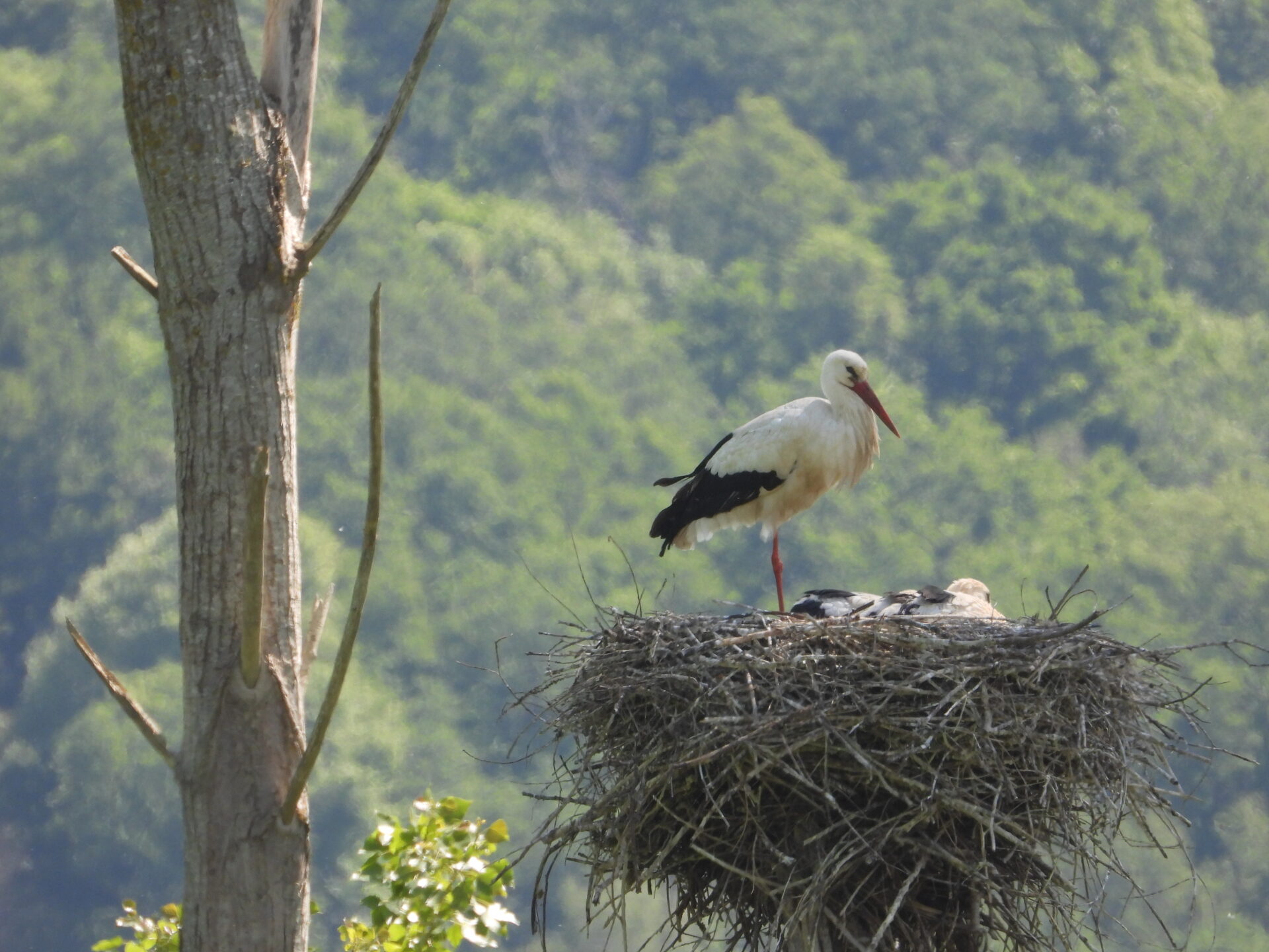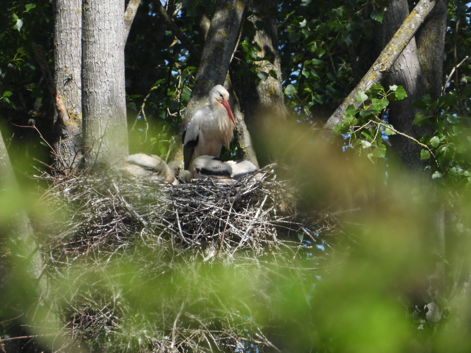 Grâce à Martin Nouel nous étions 8 à découvrir quelques-uns des nids de cigognes installés dans le marais Vernier… et que de belles surprises : balai de cigognes dans le ciel bleu à notre arrivée et nombre de petits dans les nids! Entre émerveillement et enthousiasme, béatitude et observation méditative, cette sortie nous a donné envie … d’y retourner l’année prochaine! A vos agendas!